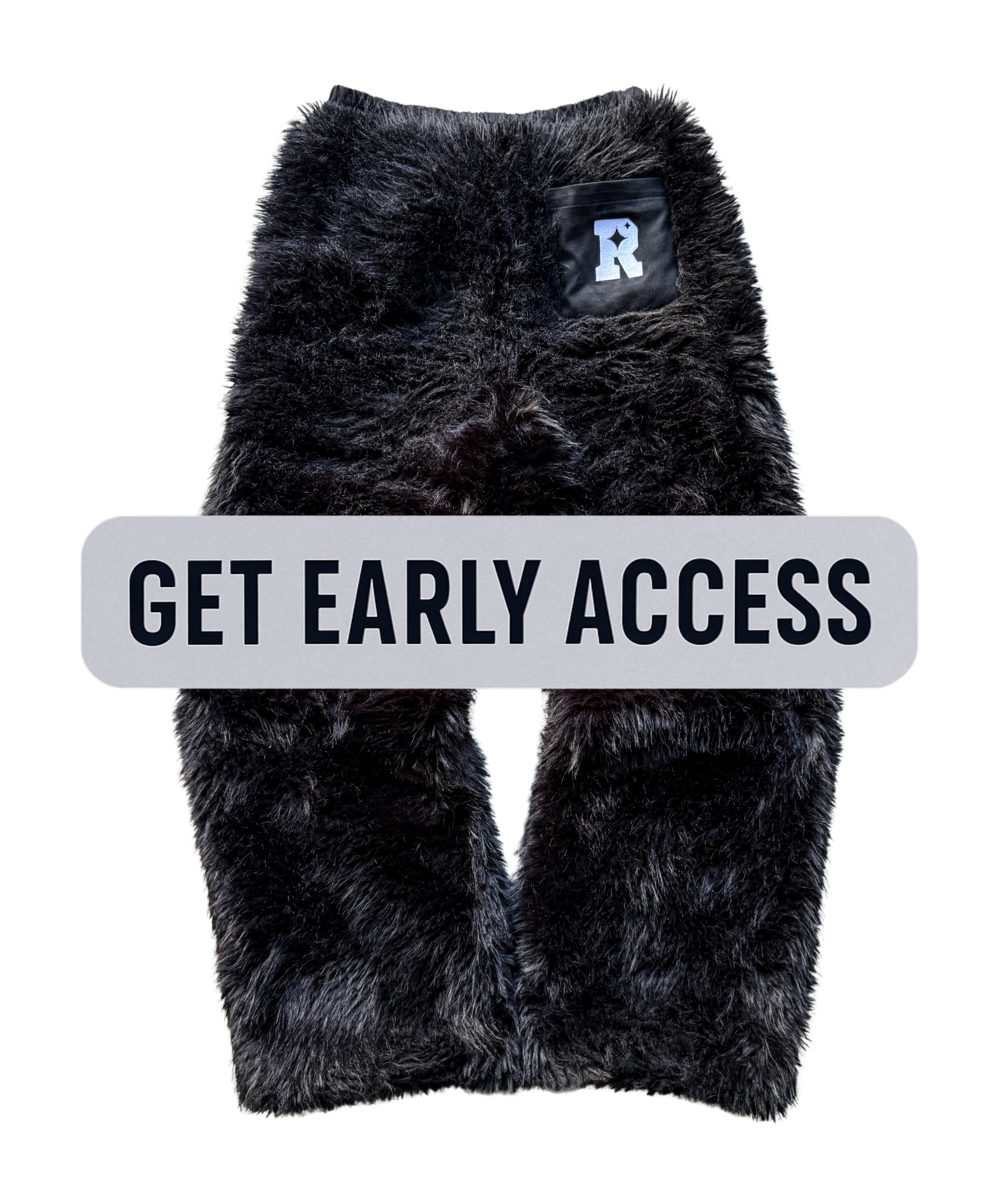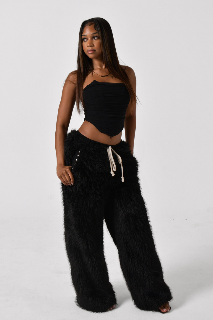 DETAILS: Mid-weight fur pants designed with a relaxed fit and elastic drawstring waistband. The pockets are lined with individually hand-stitched diamond detailing, and the back features an embroidered Ramasse logo patch