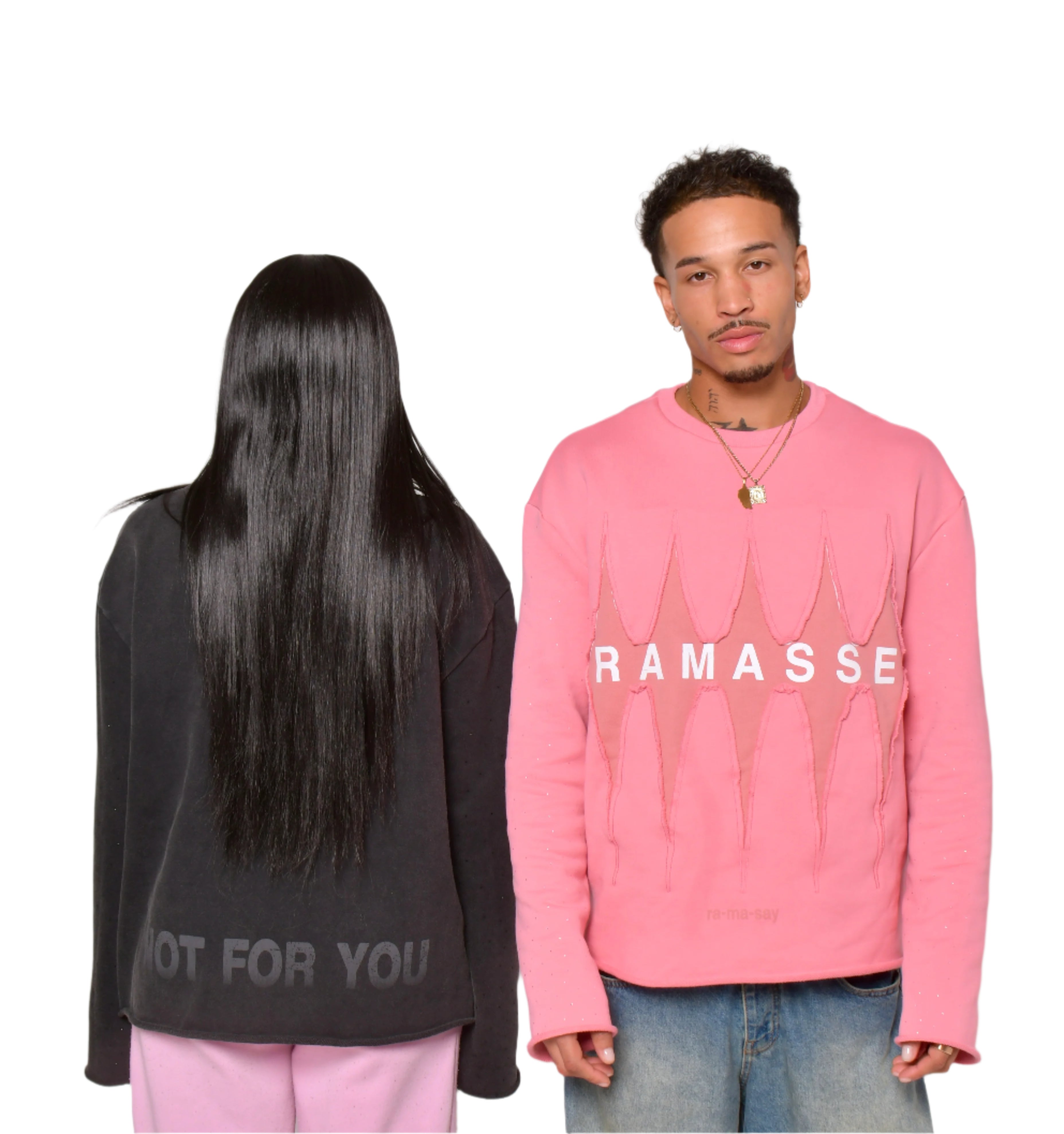 DETAILS: Eye-catching double layer, rhinestones on sleeves, distressing on collar, NOT FOR YOU print on back.
